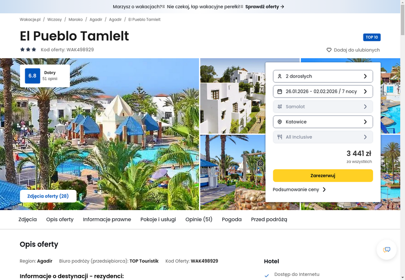Oferty wycieczek dostarczone przez naszych partnerów nie są aktualizowane w czasie rzeczywistym, w związku z czym ceny i dostępność ofert mogą się nieznacznie różnić od aktualnych. Dokładamy wszelkich starań aby rozbieżności były jak najmniejsze.