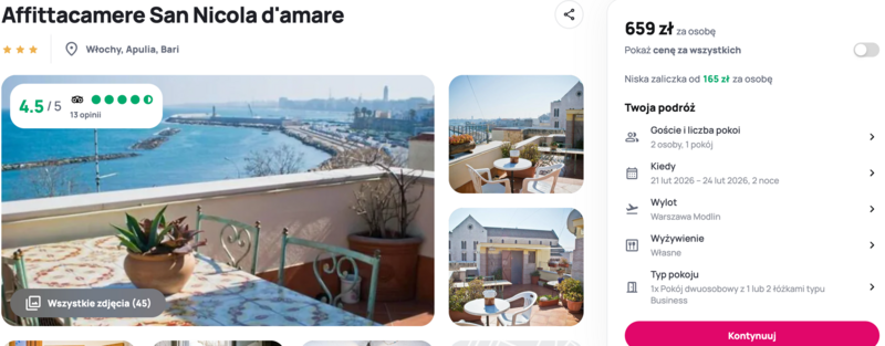 To świetna opcja dla osób, które marzą o krótkim, ale dobrze zorganizowanym wypadzie do Włoch. Komfortowy nocleg, dogodne położenie i pozytywne opinie gości zachęcają, by dać się przekonać do tej propozycji i spędzić kilka dni, łapiąc włoski klimat i odkrywając uroki południa kraju.