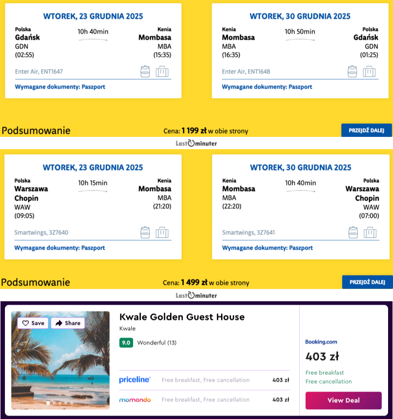 Z czysto praktycznego punktu widzenia – taka podróż to bardzo korzystna opcja. Mombasa oferuje mnóstwo możliwości – niezależnie od tego, czy planujesz aktywny urlop, czy spokojny relaks. To kierunek, który cieszy się dużym zainteresowaniem, i nietrudno zrozumieć dlaczego.