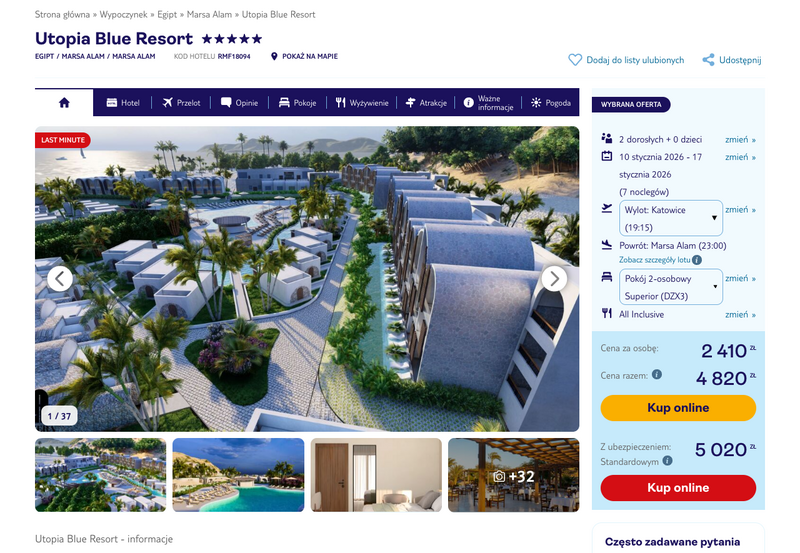 Misją Lastminuter.pl jest przedstawienie Ci najlepszych zdaniem naszej redakcji okazji na podróże. Opisujemy oferty znalezione przez nas w internecie i wskazujemy adresy internetowe, pod którymi samodzielnie możesz wykupić podróż lub elementy podróży. Ceny w artykułach są aktualne w chwili publikacji. Możemy otrzymywać wynagrodzenie od partnerów handlowych, do których Cię przekierowujemy. Nie ma to wpływu na cenę Twojej wycieczki. Powielanie publikacji zabronione.