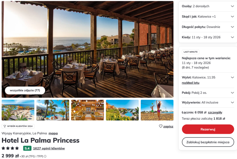 Wszystko to sprawia, że La Palma Princess prezentuje się jako świetna opcja na wypoczynek – bez względu na to, czy planujemy romantyczny wyjazd, czy rodzinne wczasy. Ciepłe słońce, oceaniczne krajobrazy i wygodna formuła all inclusive sprawiają, że łatwo o pełne oderwanie od codzienności.