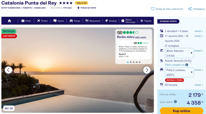 Jeśli dodać do tego atrakcyjną cenę i komfortowe warunki pobytu – całość prezentuje się bardzo zachęcająco. To propozycja idealna dla tych, którzy chcą wypocząć w pięknym otoczeniu, ciesząc się słońcem, dobrą kuchnią i hiszpańską gościnnością.