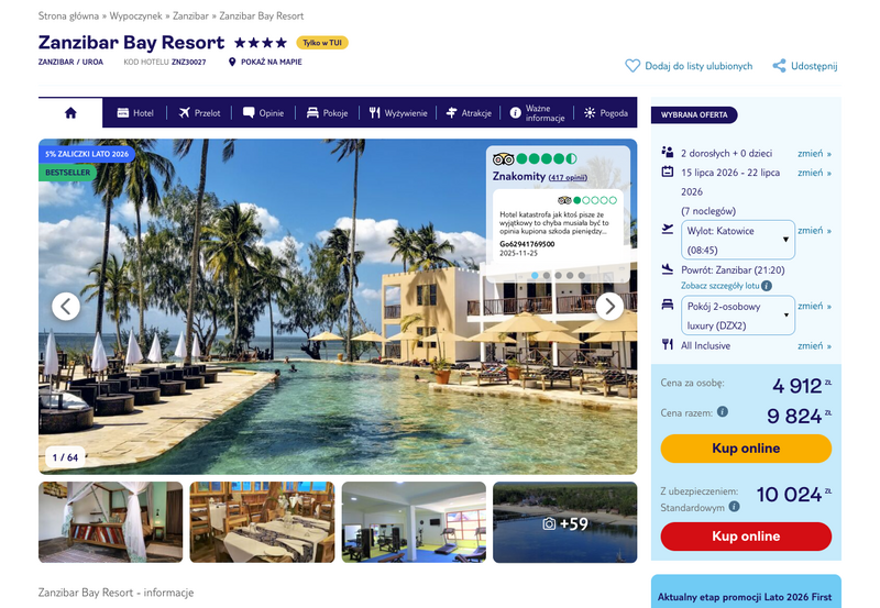 Aktualizacja: Wakacje (lipiec-sierpień) na Zanzibarze: 4* hotel z all inclusive przy plaży od 4792 zł