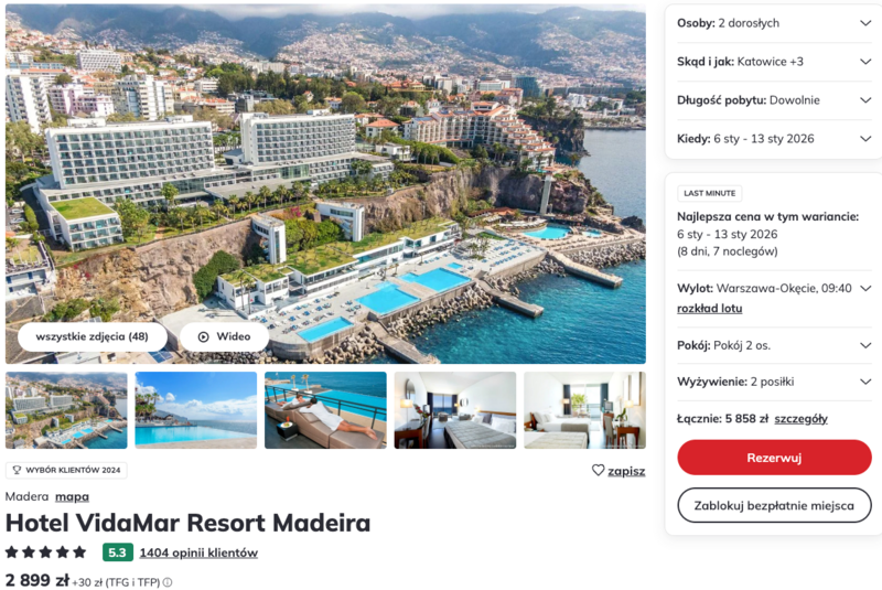 Propozycja pobytu w pięciogwiazdkowym hotelu, który oferuje nie tylko komfort, ale i szereg udogodnień, wygląda naprawdę atrakcyjnie – zwłaszcza w tej cenie. W pakiecie zawarto już posiłki i transfery, więc organizacja wyjazdu staje się naprawdę prosta. Jeśli ktoś szuka połączenia relaksu, przyrody i odrobiny luksusu – VidaMar Resort Madeira sprawdzi się doskonale, niezależnie od pory roku.