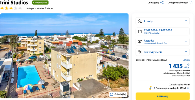 Wylot do Grecji zaplanowano z Rzeszowa, a celem jest hotel Irini Studios.