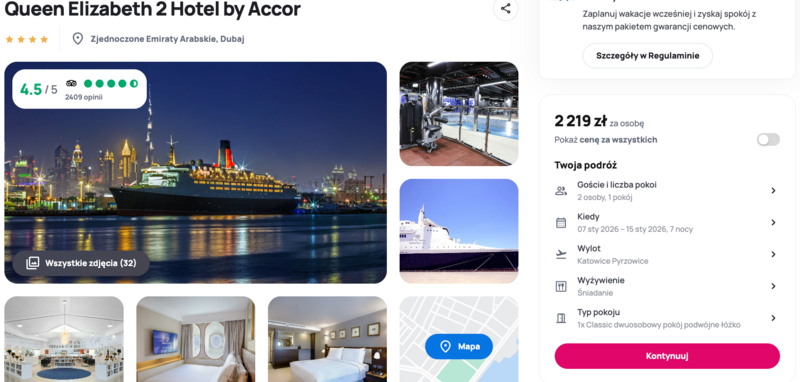 Wypoczynek w Dubaju: Pobyt na statku Queen Elizabeth 2 Hotel ze śniadaniami od 2219 zł