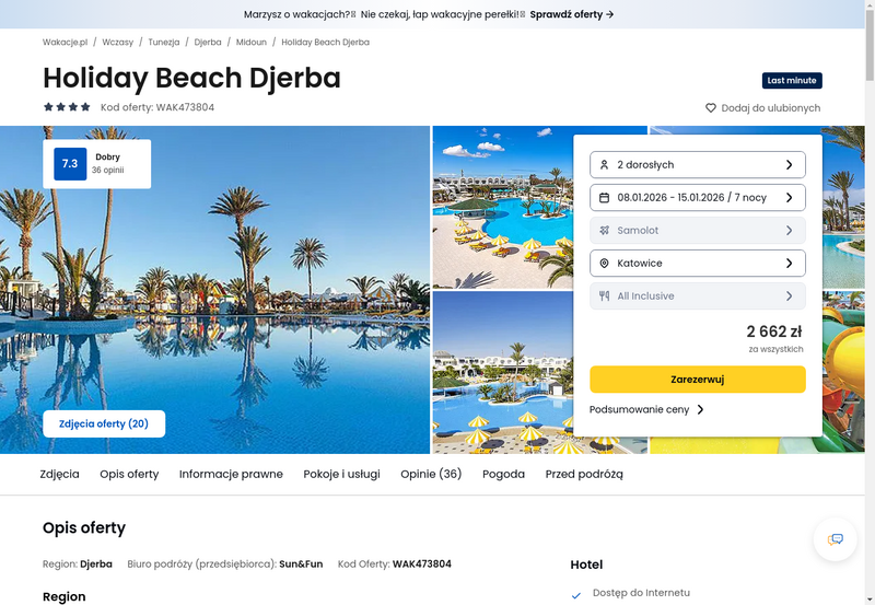 Misją Lastminuter.pl jest przedstawienie Ci najlepszych zdaniem naszej redakcji okazji na podróże. Opisujemy oferty znalezione przez nas w internecie i wskazujemy adresy internetowe, pod którymi samodzielnie możesz wykupić podróż lub elementy podróży. Ceny w artykułach są aktualne w chwili publikacji. Możemy otrzymywać wynagrodzenie od partnerów handlowych, do których Cię przekierowujemy. Nie ma to wpływu na cenę Twojej wycieczki. Powielanie publikacji zabronione.