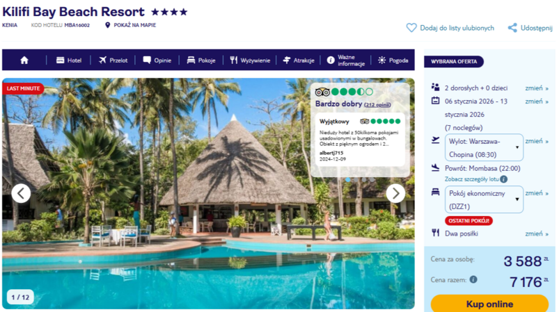 Wyloty do Mombasy rozpoczynają się w Warszawie, Gdańsku i Katowicach, a celem podróży jest wyjątkowo uroczy Kilifi Bay Beach Resort, położony tuż nad brzegiem Oceanu Indyjskiego.