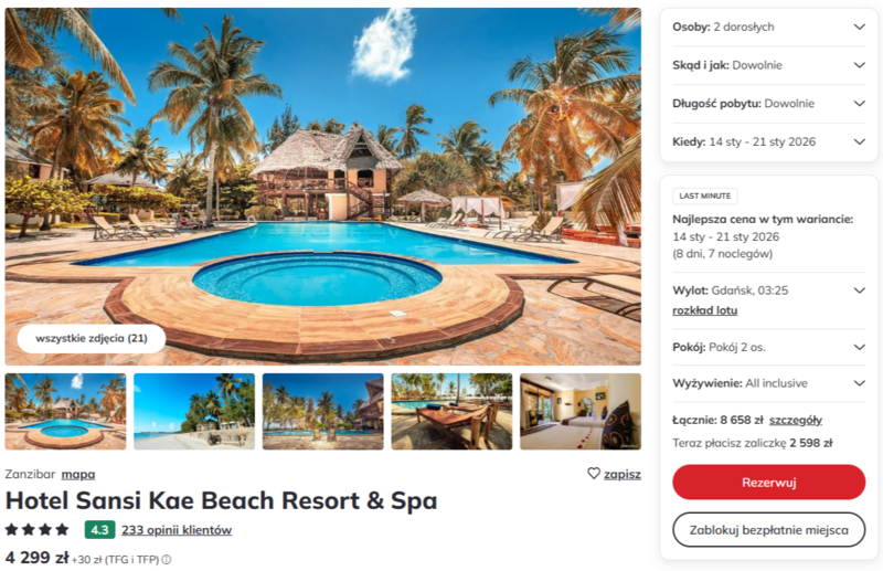 Choć hotel ma kilka drobnych niedociągnięć, całościowo oferta wypada naprawdę dobrze. Zanzibar w opcji all inclusive, z komfortowym zakwaterowaniem, piękną plażą i egzotycznym klimatem to propozycja, która z pewnością przypadnie do gustu wszystkim, którzy marzą o zimowym odpoczynku w cieplejszych rejonach świata.