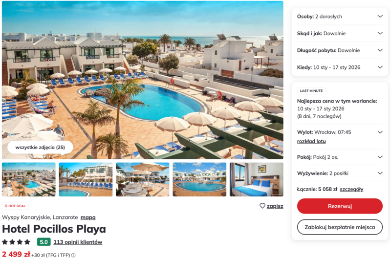 Cała oferta – przelot, transfer i pobyt – wypada atrakcyjnie także cenowo, biorąc pod uwagę poziom usług i wszystko to, co Lanzarote ma do zaoferowania. To propozycja, która może przypaść do gustu każdemu, kto szuka słońca, odrobiny przygody i chwili oderwania od codzienności.