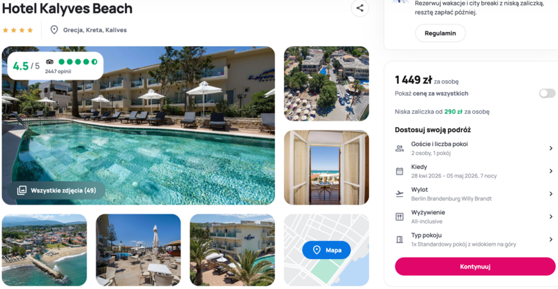 Hotel Kalyves Beach ma na koncie ponad dwa tysiące opinii i średnią ocenę 4,5 gwiazdki, co mówi samo za siebie. Goście szczególnie chwalą przyjazną atmosferę i pomocną obsługę. Dzięki formule all inclusive nie trzeba martwić się o posiłki – wszystko jest w cenie, od śniadania po wieczorne posiłki. Dzieci mają do dyspozycji plac zabaw, a dorośli mogą zrelaksować się na basenie, w saunie albo spa.