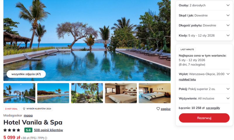 Wylot z Warszawy na wyjątkowy Madagaskar to świetna okazja, by oderwać się od codzienności i zanurzyć w egzotycznym klimacie. Pobyt w Hotelu Vanila & Spa to propozycja dla tych, którzy marzą o spokojnym wypoczynku w pięknym otoczeniu i chcą przy okazji doświadczyć czegoś nowego.