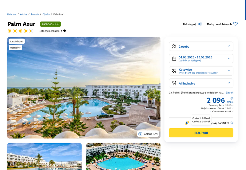 Aktualizacja: Tunezja (Djerba): 14 dni w bardzo dobrze ocenianym 4* hotelu z all inclusive od 2096 zł