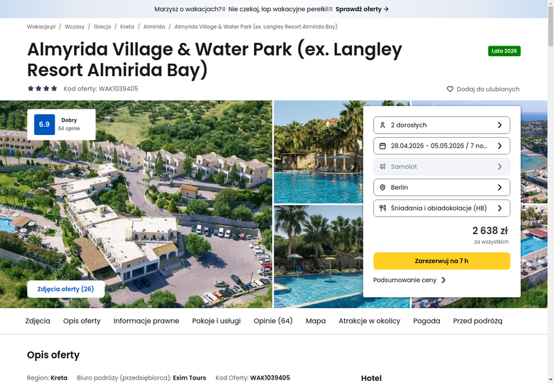 Aktualizacja: Majówka na Krecie: 4* hotel z wyżywieniem od 1329 zł