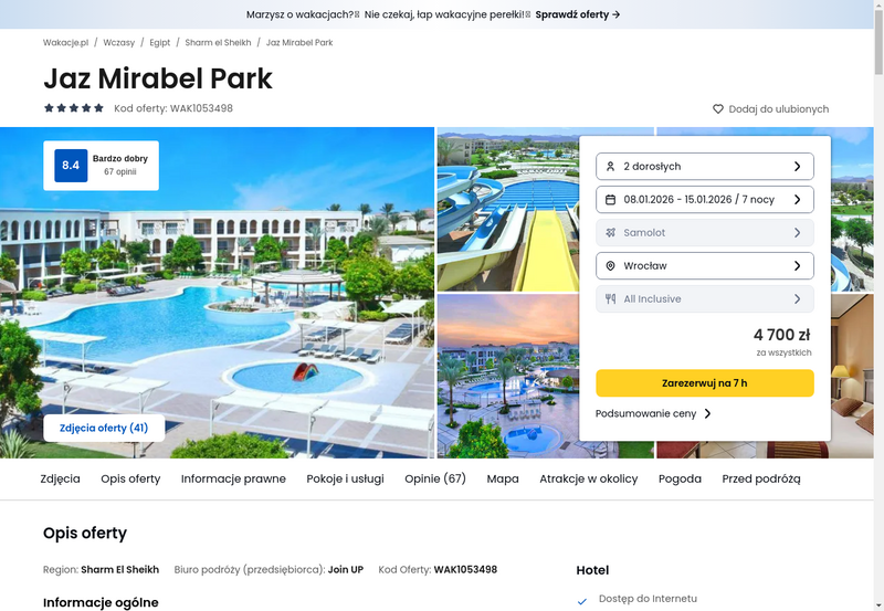 Aktualizacja: Wypoczynek w słonecznym klimacie: Egipt, 5* Jaz Mirabel Park z all inclusive od 1951 zł