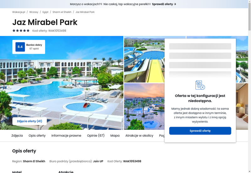 Niedostępność oferty została udokumentowana zrzutem ekranu.