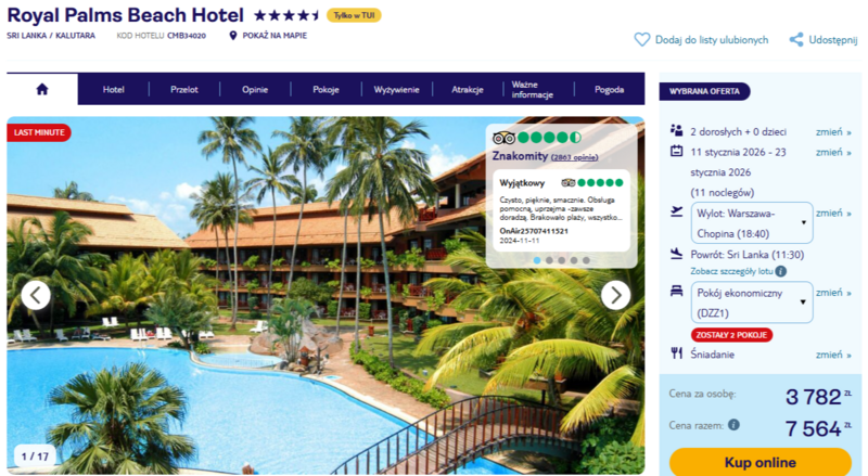 Wyloty z Warszawy, Poznania, Gdańska i Katowic, celem jest Sri Lanka i pobyt w Royal Palms Beach Hotel w Kalutara, na zachodnim wybrzeżu wyspy. To idealne miejsce dla tych, którzy szukają odpoczynku w egzotycznej scenerii, bez rezygnowania z wygody.