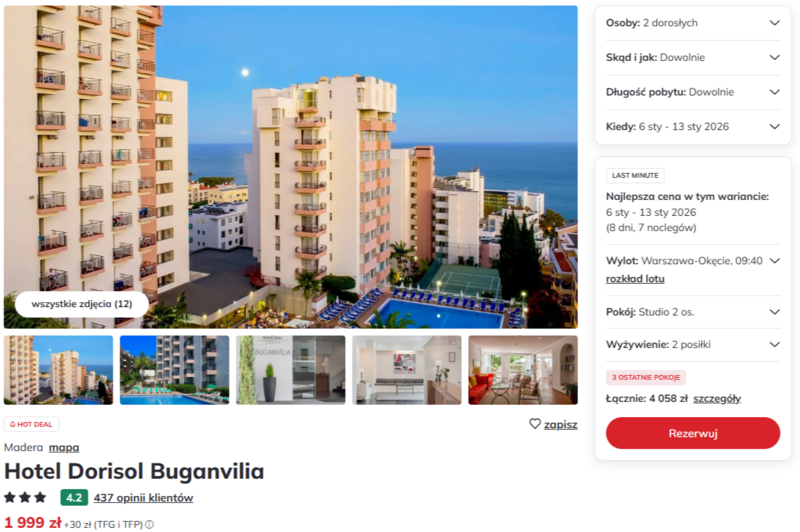 Całość tworzy naprawdę udaną propozycję dla tych, którzy chcą połączyć odpoczynek z odkrywaniem nowych miejsc. Dorisol Buganvilia to dobre miejsce na bazę wypadową, a sama Madera pokazuje, że piękno natury i lokalna gościnność potrafią zamienić zwykły wyjazd w coś wyjątkowego.