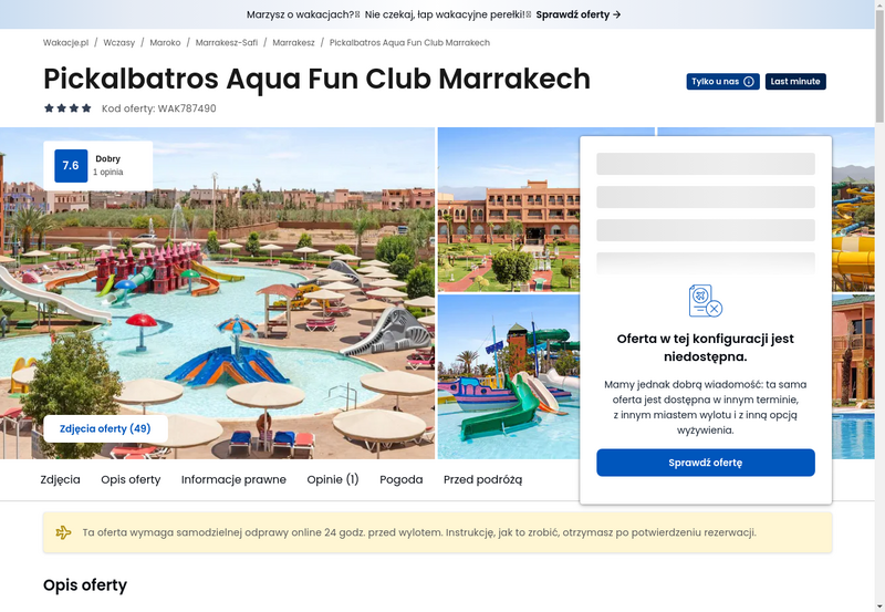 Niedostępność oferty została udokumentowana zrzutem ekranu.