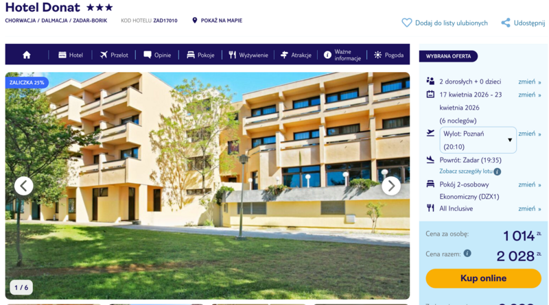 Wylot z Poznania, Wrocławia i Krakowa do słonecznej Dalmacji to świetna okazja, by na własne oczy zobaczyć uroki chorwackiego wybrzeża. Zakwaterowanie w hotelu Donat to propozycja dla tych, którzy cenią sobie wygodę i brak zmartwień – formuła all inclusive pozwala skupić się wyłącznie na wypoczynku i przyjemnościach, nie martwiąc się o dodatkowe koszty.