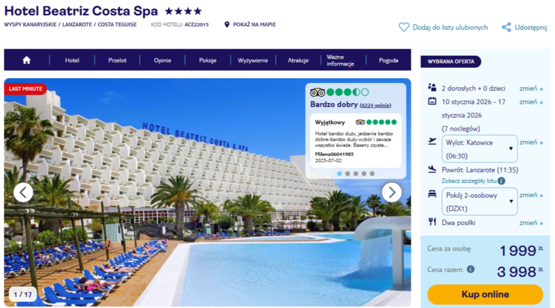 Cała oferta, obejmująca pobyt w Beatriz Costa Spa, prezentuje się naprawdę korzystnie. Atrakcyjna cena, solidny standard i wiele możliwości spędzania wolnego czasu sprawiają, że ta propozycja cieszy się popularnością wśród osób szukających wygody i ciekawych widoków. Jeśli marzy Ci się trochę słońca w środku zimy, Lanzarote może się okazać strzałem w dziesiątkę.
