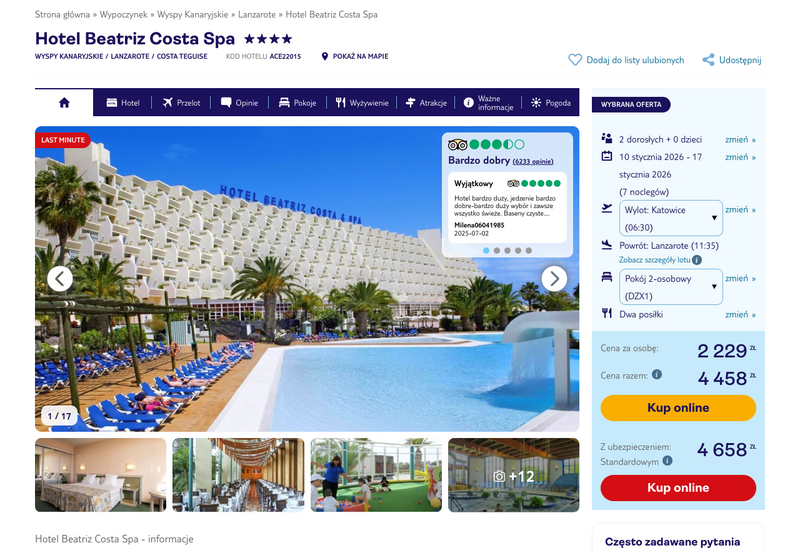 Misją Lastminuter.pl jest przedstawienie Ci najlepszych zdaniem naszej redakcji okazji na podróże. Opisujemy oferty znalezione przez nas w internecie i wskazujemy adresy internetowe, pod którymi samodzielnie możesz wykupić podróż lub elementy podróży. Ceny w artykułach są aktualne w chwili publikacji. Możemy otrzymywać wynagrodzenie od partnerów handlowych, do których Cię przekierowujemy. Nie ma to wpływu na cenę Twojej wycieczki. Powielanie publikacji zabronione.
