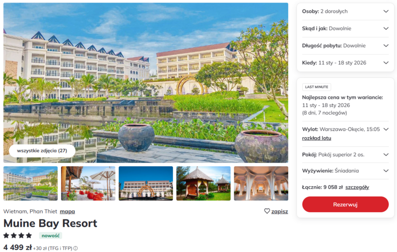 Wylot z Warszawy do Azji, brzmi jak idealny początek przygody. Waszym celem jest Muine Bay Resort, czterogwiazdkowy obiekt położony w pięknej, nadmorskiej okolicy w pobliżu Phan Thiet.