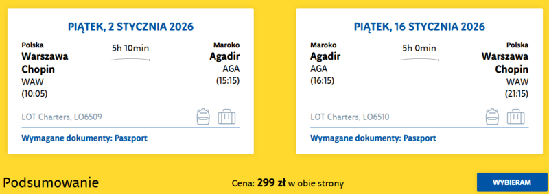 Tanie loty czarterowe z dużym bagażem do Maroka za 299 zł