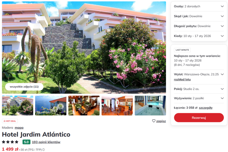 Madera często nazywana jest „wyspą wiecznej wiosny” i trudno się temu dziwić – bujna roślinność, łagodny klimat i niezwykłe krajobrazy potrafią zachwycić o każdej porze roku. Hotelowe pokoje z aneksem kuchennym dają swobodę, a wiele osób chwali również spokój i przestrzeń, które pomagają naprawdę wypocząć. Na miejscu nie brakuje też udogodnień – restauracja serwuje smaczne dania, a chwile relaksu czekają przy basenie, w saunie czy jacuzzi.