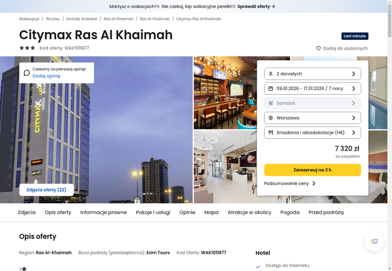 Misją Lastminuter.pl jest przedstawienie Ci najlepszych zdaniem naszej redakcji okazji na podróże. Opisujemy oferty znalezione przez nas w internecie i wskazujemy adresy internetowe, pod którymi samodzielnie możesz wykupić podróż lub elementy podróży. Ceny w artykułach są aktualne w chwili publikacji. Możemy otrzymywać wynagrodzenie od partnerów handlowych, do których Cię przekierowujemy. Nie ma to wpływu na cenę Twojej wycieczki. Powielanie publikacji zabronione.