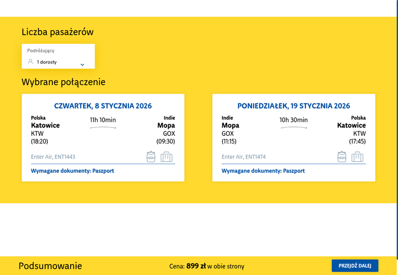 Tanie loty czarterowe z dużym bagażem do Indii (Goa) za 899 zł