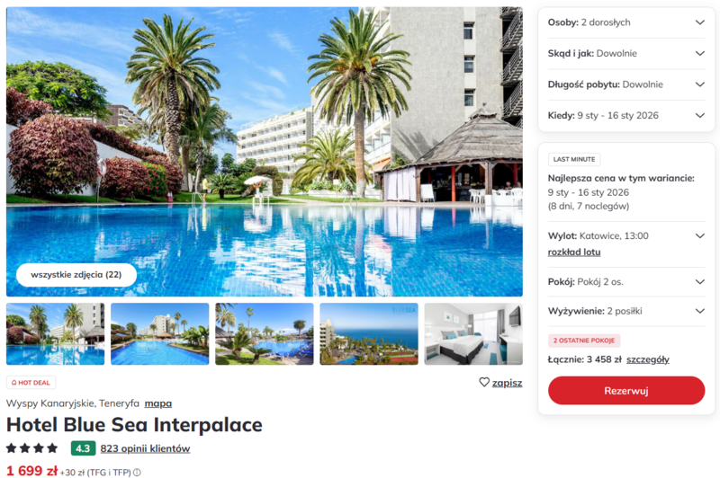 Biorąc pod uwagę połączenie komfortowego hotelu, przyjemnej temperatury i różnorodnych atrakcji, wycieczka na Teneryfę w tej cenie wygląda bardzo korzystnie. To dobra okazja, by oderwać się od codzienności i poczuć wyspiarski klimat.