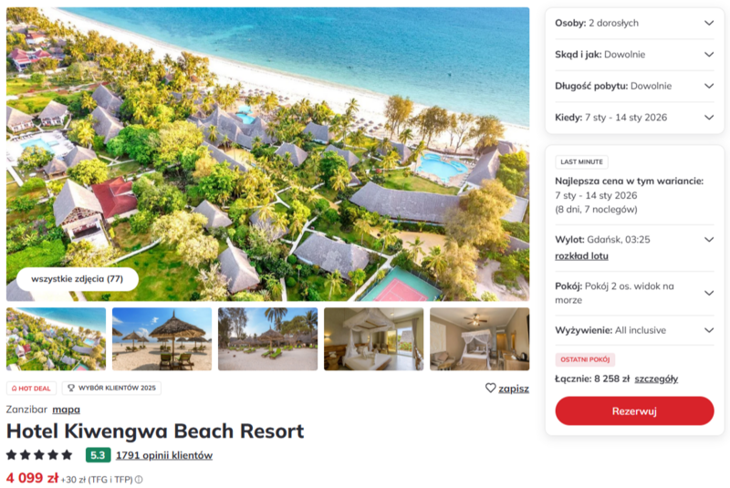 Cała oferta prezentuje się naprawdę atrakcyjnie – zarówno pod względem ceny, jak i tego, co za nią otrzymujemy. Bez względu na to, czy marzysz o błogim lenistwie na plaży, czy odkrywaniu nowych miejsc i smaków, to może być strzał w dziesiątkę.