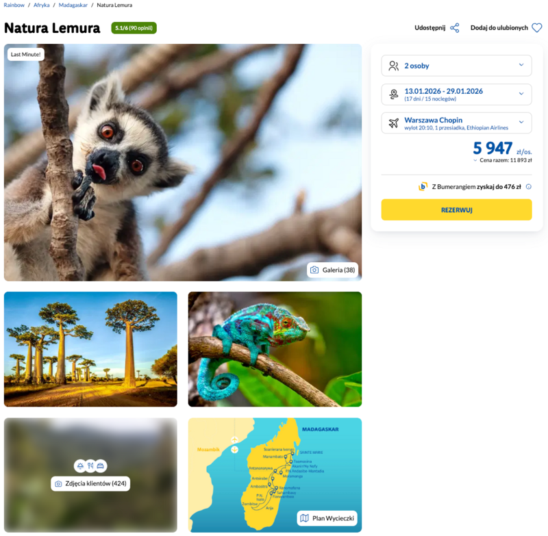To propozycja dla tych, którzy mają ochotę oderwać się od codzienności i odkryć miejsce nie do końca jeszcze odkryte przez masową turystykę. Madagaskar potrafi zaskakiwać, inspirować i zachwycać, a ta wyprawa to szansa, by przeżyć coś wyjątkowego i zupełnie innego niż klasyczny urlop pod palmą.
