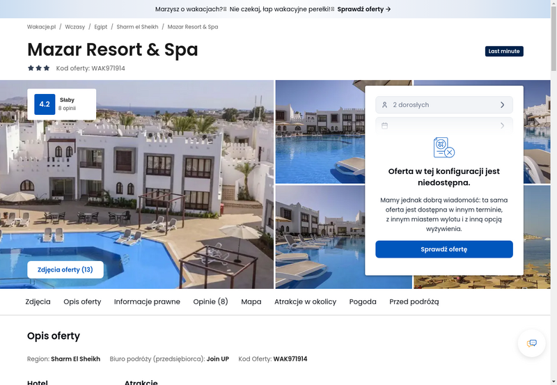 Niedostępność oferty została udokumentowana zrzutem ekranu.