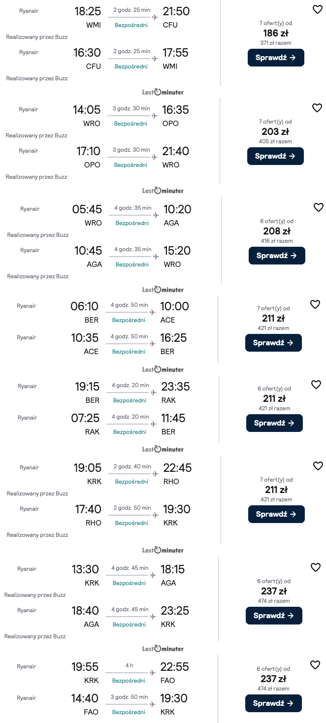 Agadir, Algarve, Korfu, Lanzarote, Marrakesz, Porto, Rodos, Wyspy Kanaryjskie, Berlin, Kraków, Warszawa, Wrocław