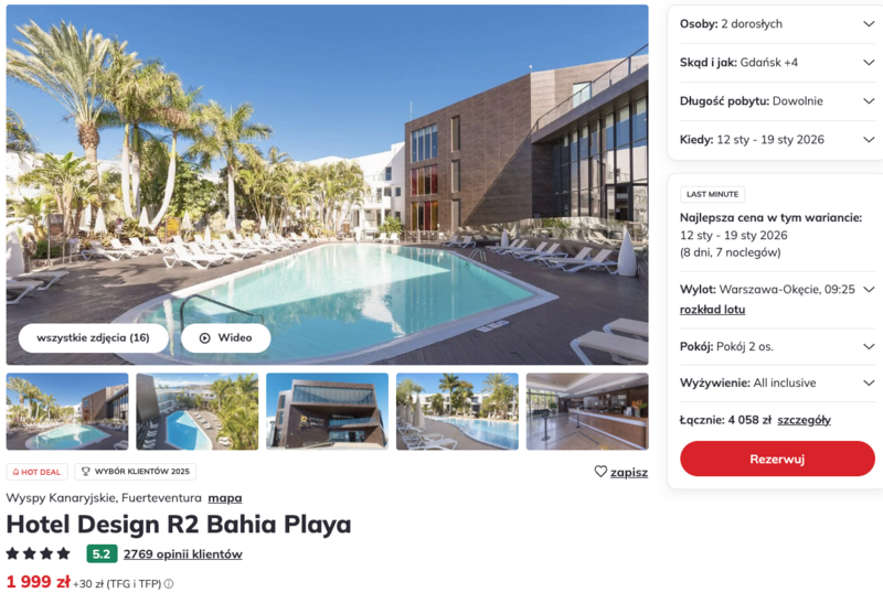 Wyloty na Fuerteventurę z Warszawy, Gdańska, Katowic i Wrocławia to świetny pomysł na oderwanie się od codzienności i złapanie oddechu wśród pięknych krajobrazów Wysp Kanaryjskich. Pobyt w hotelu Design R2 Bahia Playa to komfort wersji all inclusive i świetna baza wypadowa do odkrywania tej wyjątkowej wyspy.