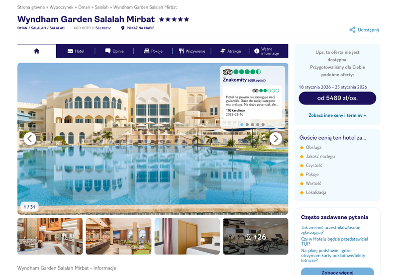 Niedostępność oferty została udokumentowana zrzutem ekranu.