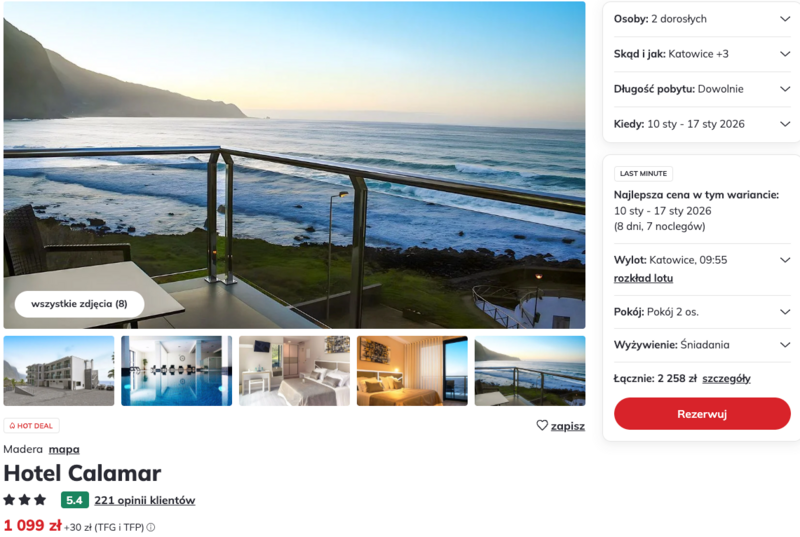 Wyloty z Katowic, Warszawy i Poznania prowadzą prosto na Maderę – portugalską wyspę pełną zieleni, klifów i oceanicznych widoków. To właśnie tam, na jej północnym wybrzeżu, znajduje się kameralny hotel Calamar, który zyskał sympatię gości swoją spokojną atmosferą i bliskością do plaży.