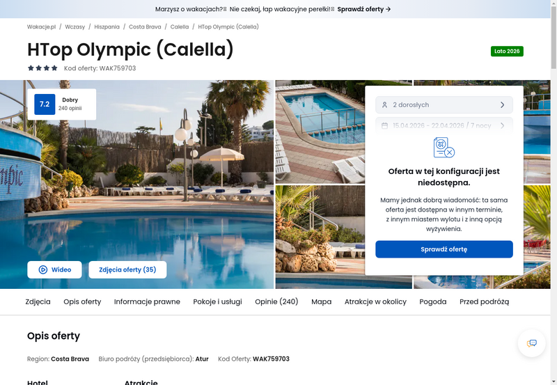 Niedostępność oferty została udokumentowana zrzutem ekranu.
