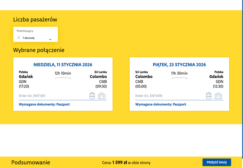 Aktualizacja: Okazja last minute: Tanie loty czarterowe z dużym bagażem do Sri Lanki za 1699 zł