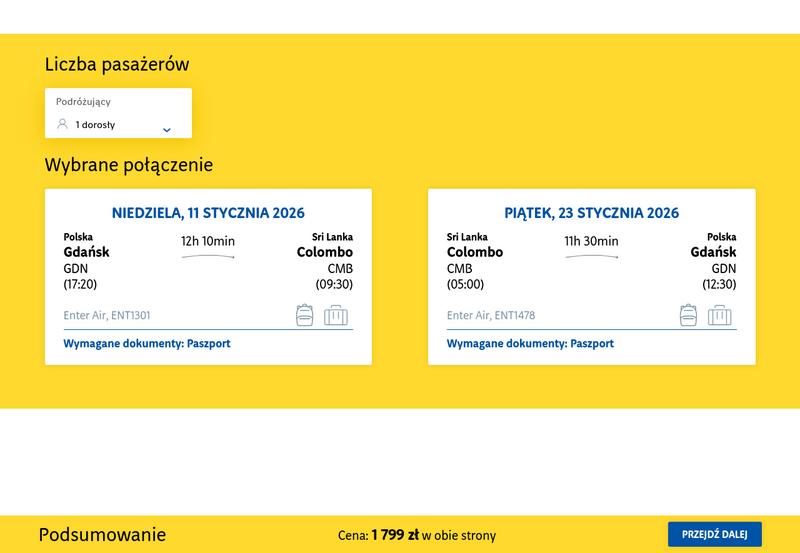 Aktualizacja: Okazja last minute: Tanie loty czarterowe z dużym bagażem do Sri Lanki za 1699 zł