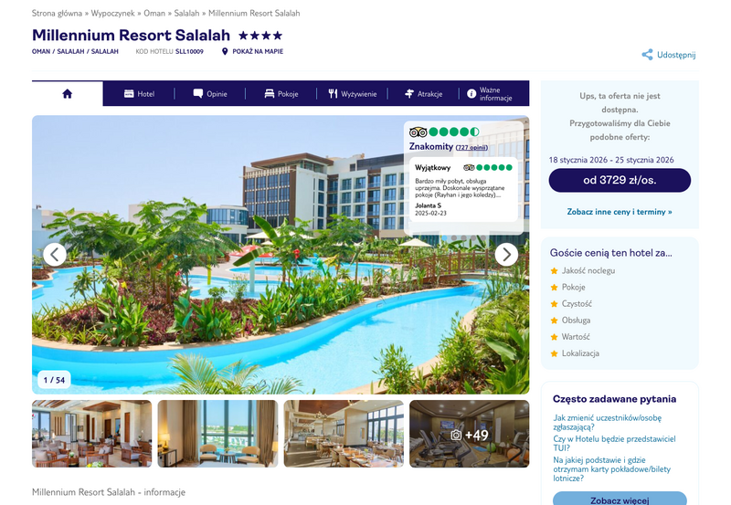 Niedostępność oferty została udokumentowana zrzutem ekranu.