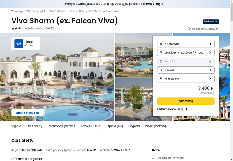 Aktualizacja: Wypoczynek w Egipcie w 3* hotelu z all inclusive za 973 zł