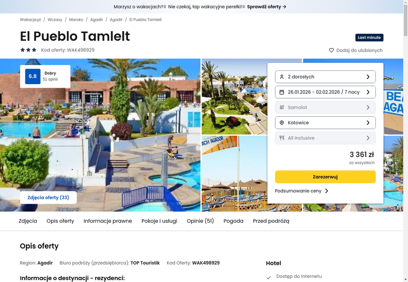 Misją Lastminuter.pl jest przedstawienie Ci najlepszych zdaniem naszej redakcji okazji na podróże. Opisujemy oferty znalezione przez nas w internecie i wskazujemy adresy internetowe, pod którymi samodzielnie możesz wykupić podróż lub elementy podróży. Ceny w artykułach są aktualne w chwili publikacji. Możemy otrzymywać wynagrodzenie od partnerów handlowych, do których Cię przekierowujemy. Nie ma to wpływu na cenę Twojej wycieczki. Powielanie publikacji zabronione.