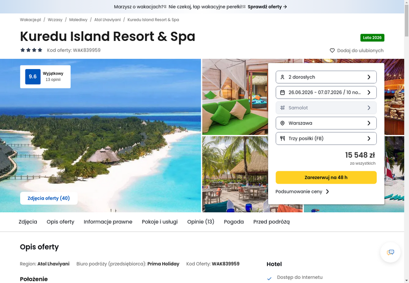 Aktualizacja: Malediwy: 10 dni w znakomitym 4* Kuredu Island Resort & Spa z pełnym wyżywieniem od 6617 zł