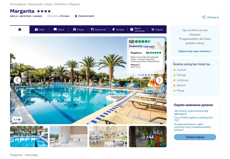 Niedostępność oferty została udokumentowana zrzutem ekranu.