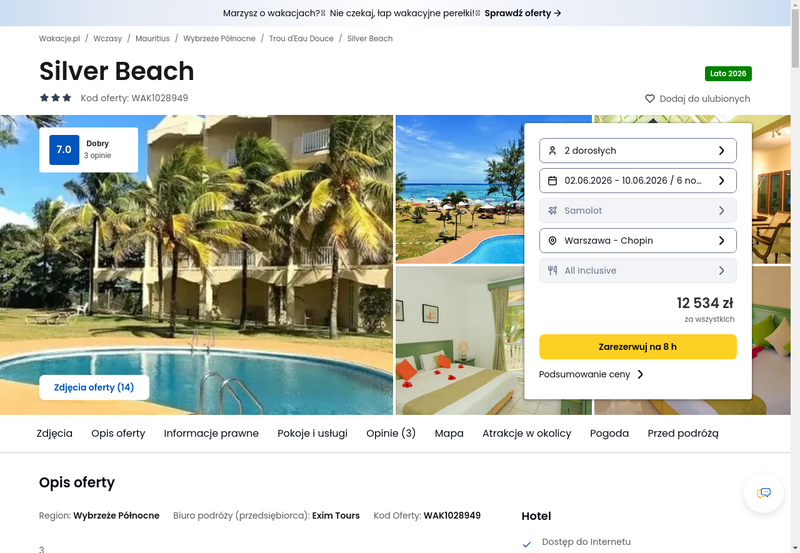 Aktualizacja: Egzotyczne all inclusive w tropikach: Mauritius, tydzień w 3* hotelu przy plaży za 6264 zł