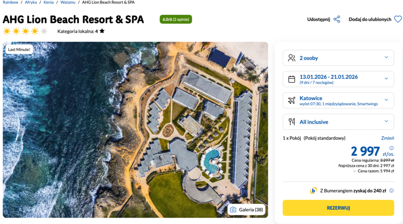 Wyloty z Katowic, Warszawy, Gdańska i Wrocławia do Kenii mogą być świetnym pomysłem. To propozycja w sam raz dla tych, którzy chcą odpocząć w ciepłym klimacie, z dala od codziennego pośpiechu. Czterogwiazdkowy hotel AHG Lion Beach Resort & SPA położony tuż przy Oceanie Indyjskim, oferuje nie tylko świetną lokalizację, ale i komfort, który pozwala naprawdę się zrelaksować. Na miejscu czeka formuła all inclusive oraz przyjazna, kenijska atmosfera, dzięki której łatwo poczuć się swobodnie.