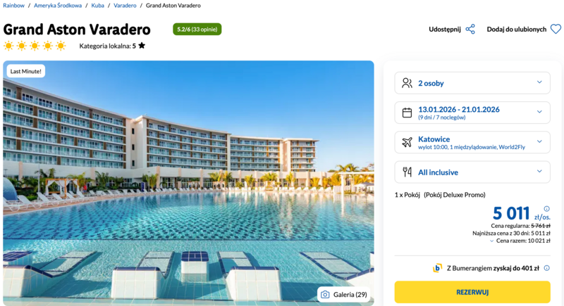 Wylot z Katowic do Varadero to świetny pomysł na oderwanie się od codzienności i spędzenie czasu w egzotycznym rytmie Kuby. Pobyt w pięciogwiazdkowym hotelu Grand Aston Varadero z all inclusive zapowiada zasłużony wypoczynek w komfortowych warunkach.